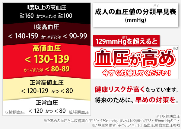 ※2:高めの血圧とは収縮期血圧130〜139mmHg、または拡張機血圧85〜89mmHgのこと